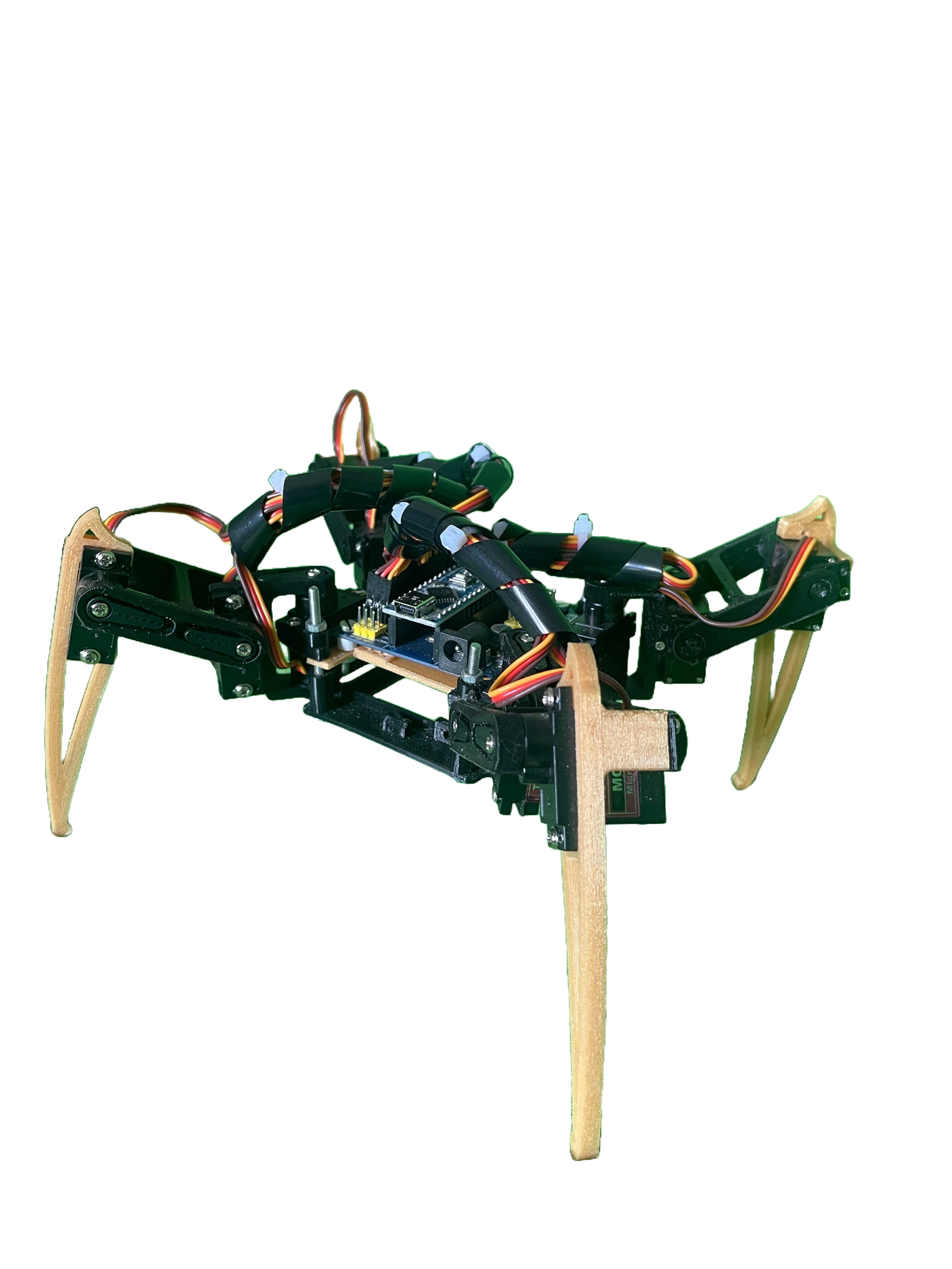 - Control: The Arduino Nano handles movement commands and algorithms, providing precise leg control for complex gaits.